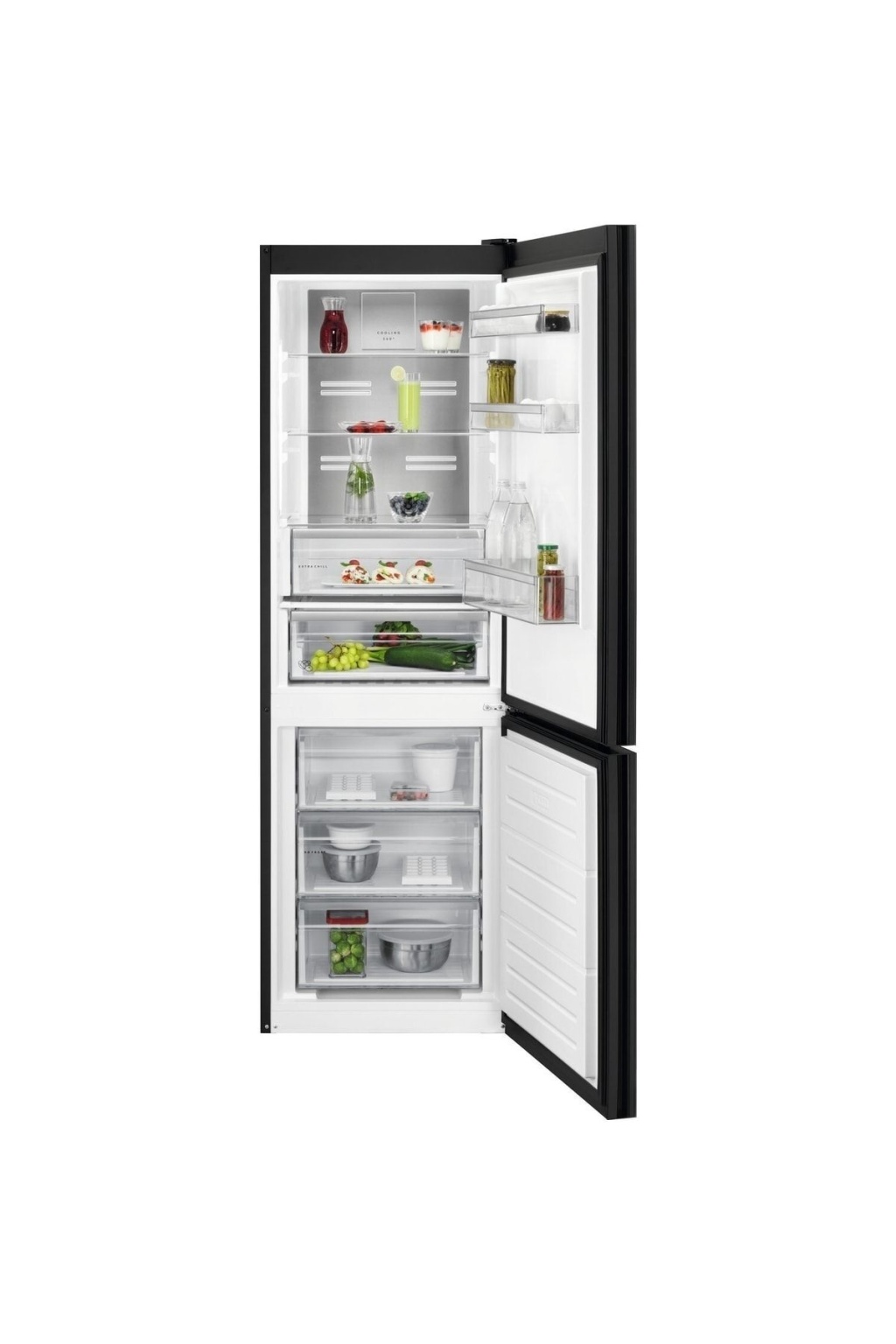 - Buzdolabının şık, çağdaş tasarımı siyah kapakları ve kaliteli malzemelerle hayat buluyor. Sorunsuz, modern bir mutfak için.